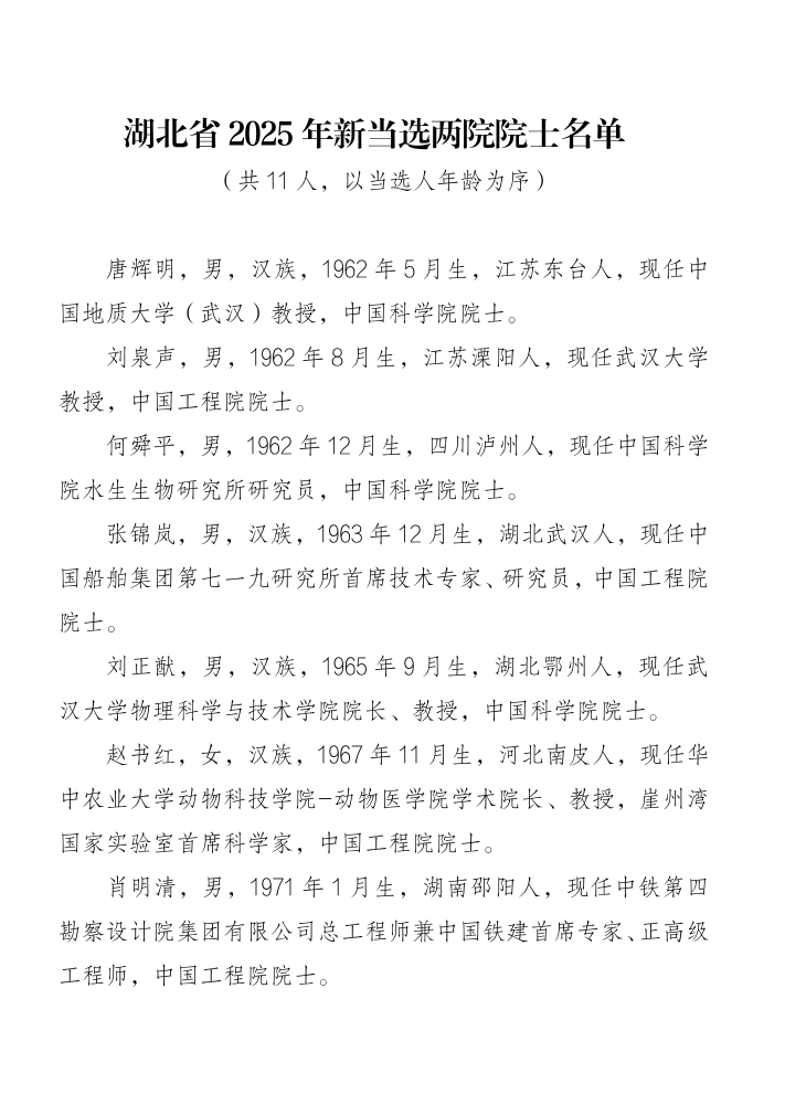 兩年一屆的院士增選,是中國科技界最高水平的智力比拼。2025年,湖北迎來院士增選的“豐收季”。
