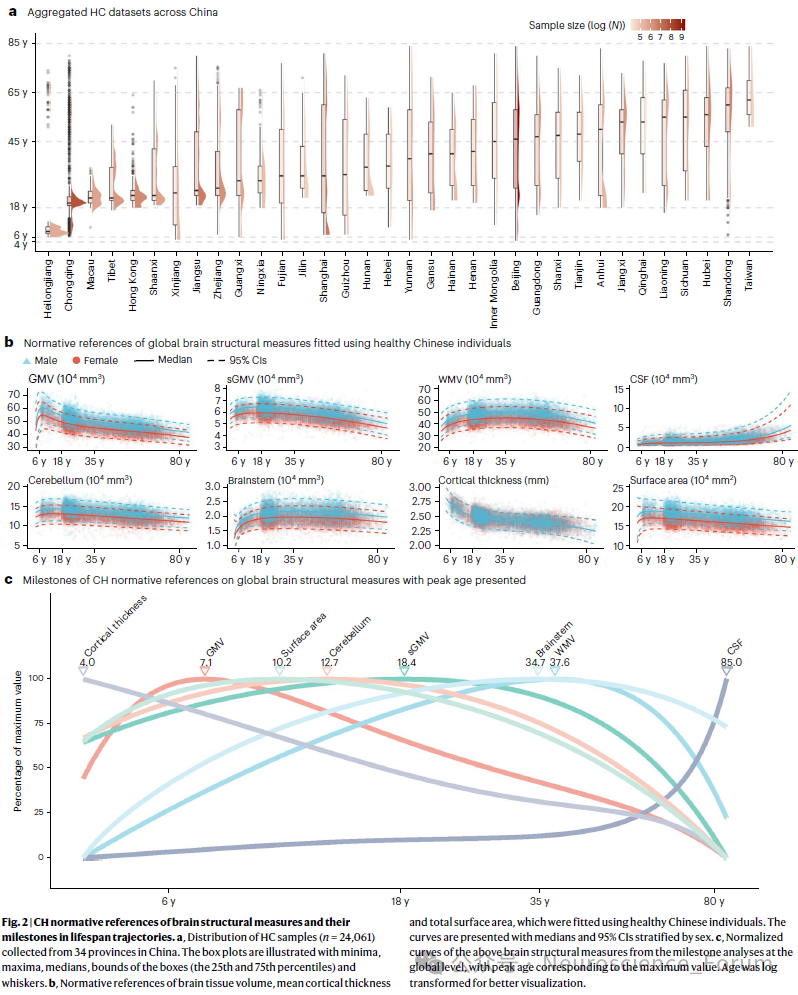 正常人群的樣本分布以及腦結構全生命周期發展和老化軌跡